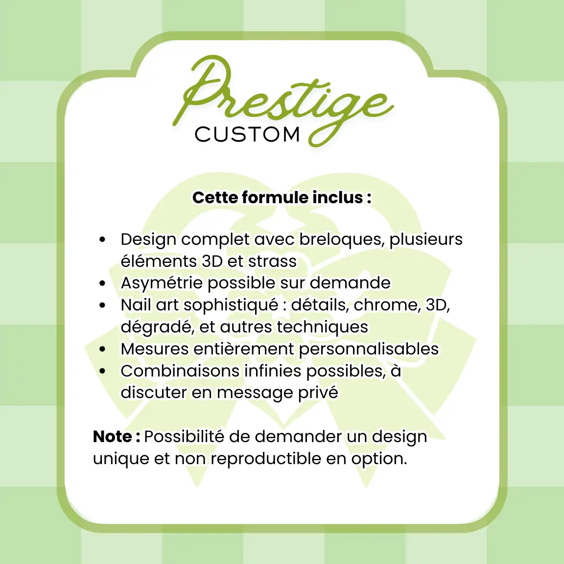 Envie d’un set de press-on nails qui reflète vos idées sans limites ? C’est possible ! Ce kit est conçu pour celles et ceux qui souhaitent un design entièrement personnalisé, qui exprime pleinement leur style et leurs envies.