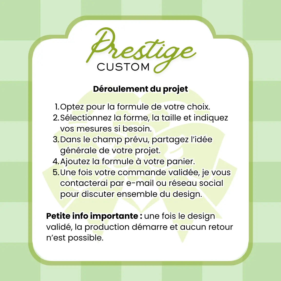 Note : Possibilité de demander un design unique et non reproductible en option (non disponible pour le moment).