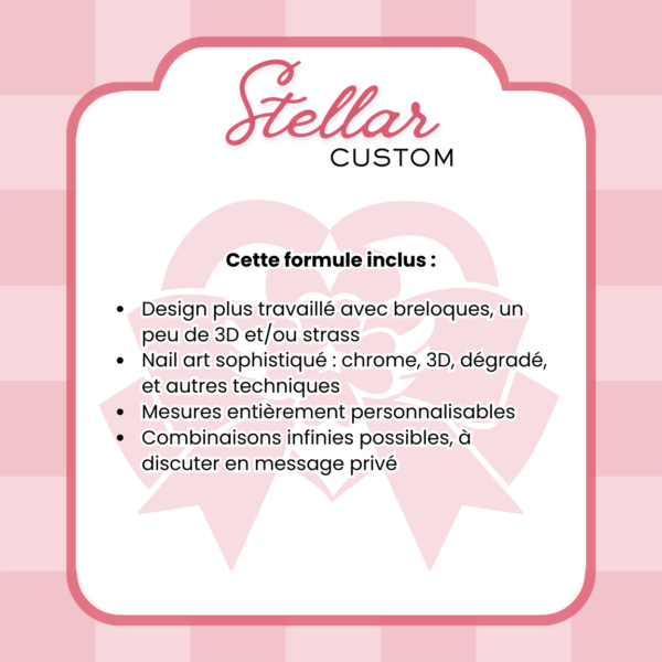 Envie d’un set de press-on nails qui reflète vos idées avec élégance et détails ? C’est possible ! Ce kit est pensé pour celles et ceux qui souhaitent un design travaillé, qui complète parfaitement votre style, tout en restant entièrement personnalisé selon vos inspirations.